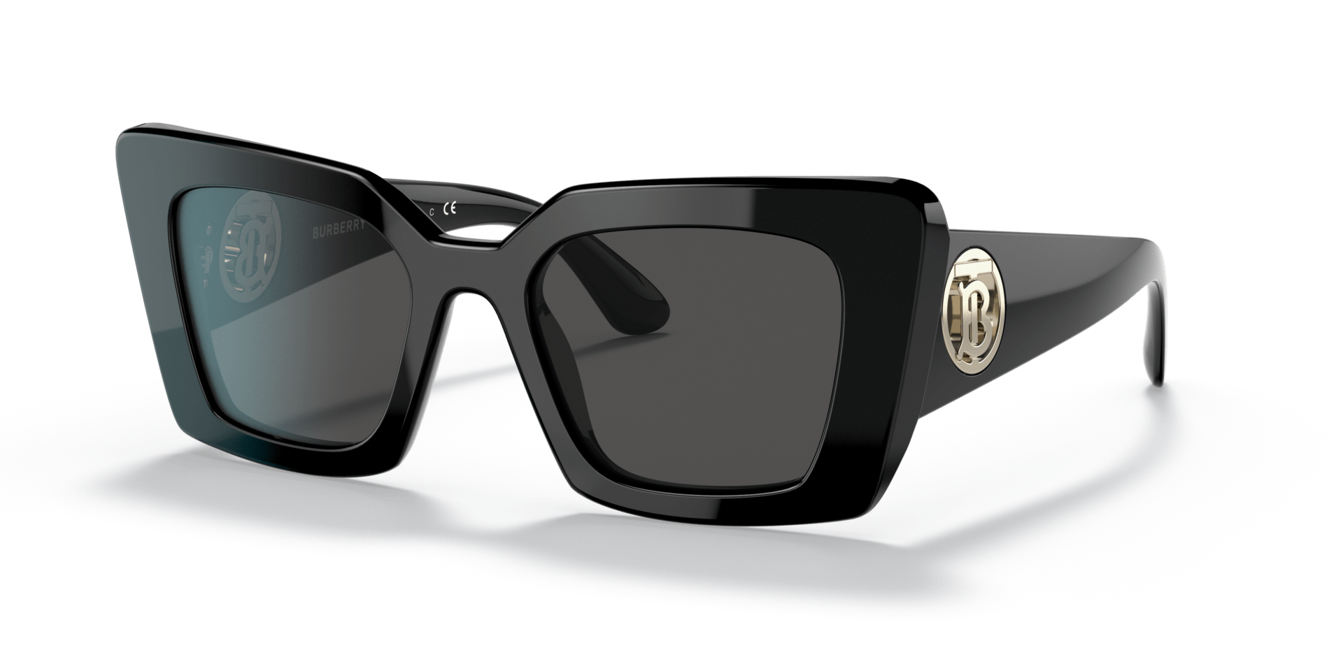 Meet Burberry Daisy, a new era of iconic sunglasses. The square-shaped frame has been reimagined in black acetate with dark gray lenses. These sunglasses are crafted from premium materials and feature the exclusive Burberry Daisy pattern on the temples. They are the stylish embodiment of timeless elegance and contemporary design. Elevating any look to iconic status, these shades will become your new go-to accessory.