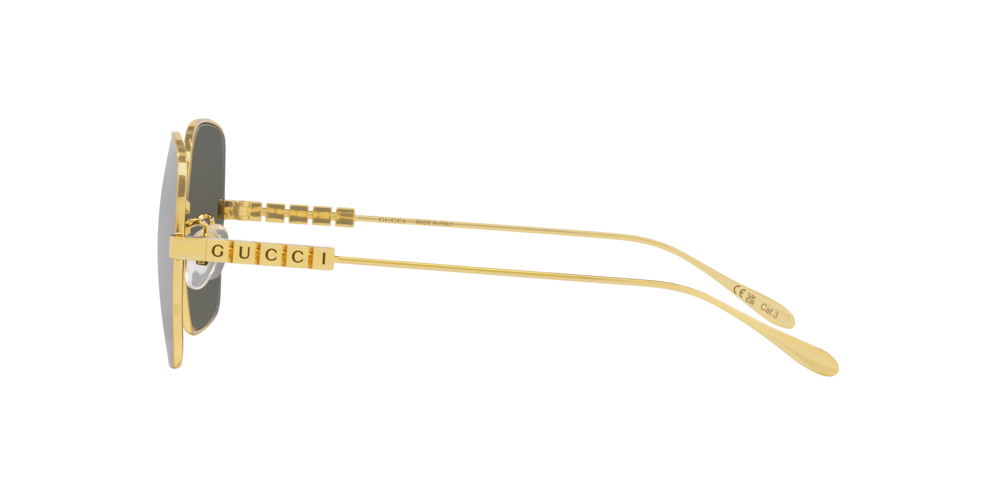 Elevate your style with the Gucci GG1434S sunglasses, a perfect blend of sophistication and contemporary allure. The square metal frame in gold exudes timeless elegance, while the gray lenses add an unexpected touch of refinement. These lenses are made from luxurious materials, offering both comfort and durability for everyday wear.